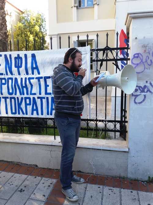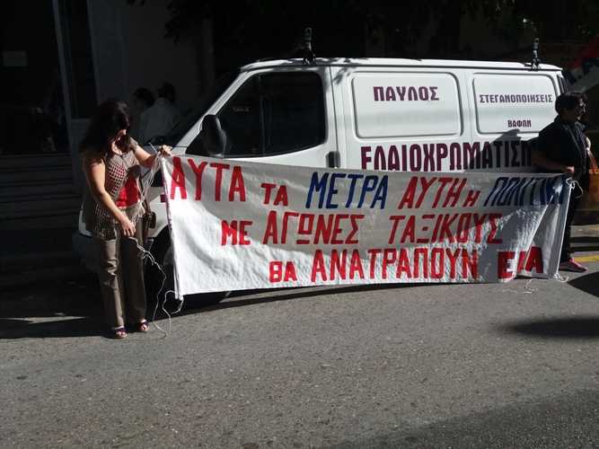 Στην κινητοποίηση συμμετείχαν μέλη των σωματείων της Α.Δ.Ε.Δ.Υ και του Π.Α.Μ.Ε κρατώντας πανό και φωνάζοντας συνθήματα κατά της κυβερνητικής πολιτικής.
