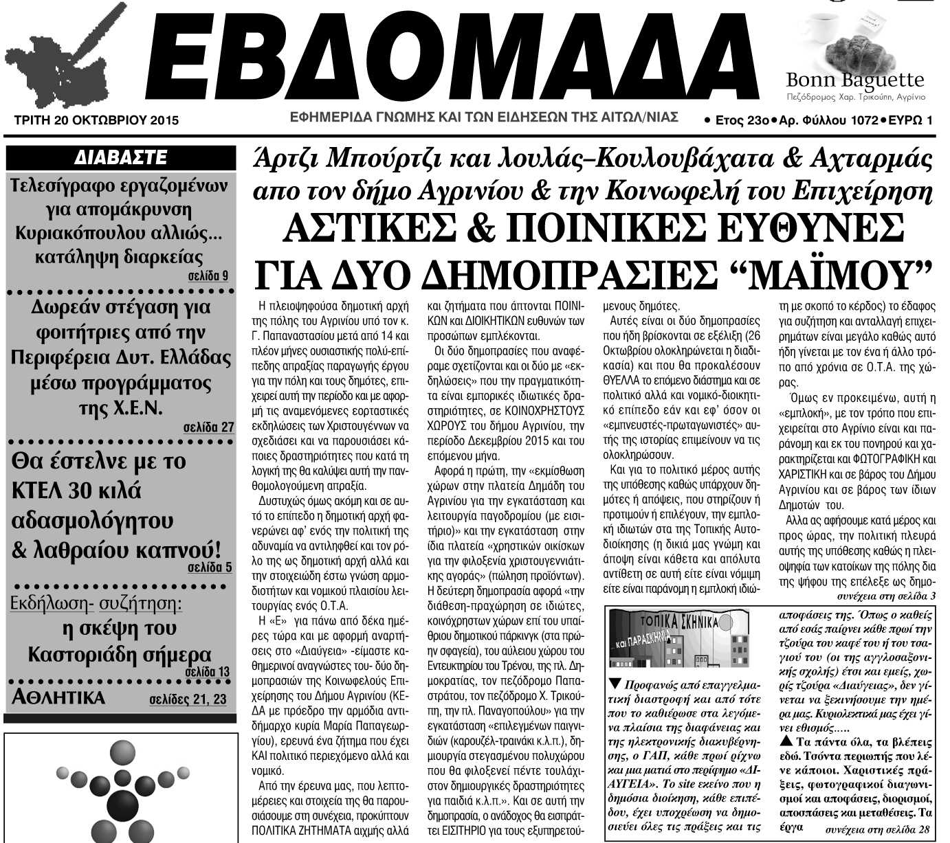 Ακολουθεί το δημοσίευμα της εφημερίδας “ΕΒΔΟΜΑΔΑ”: