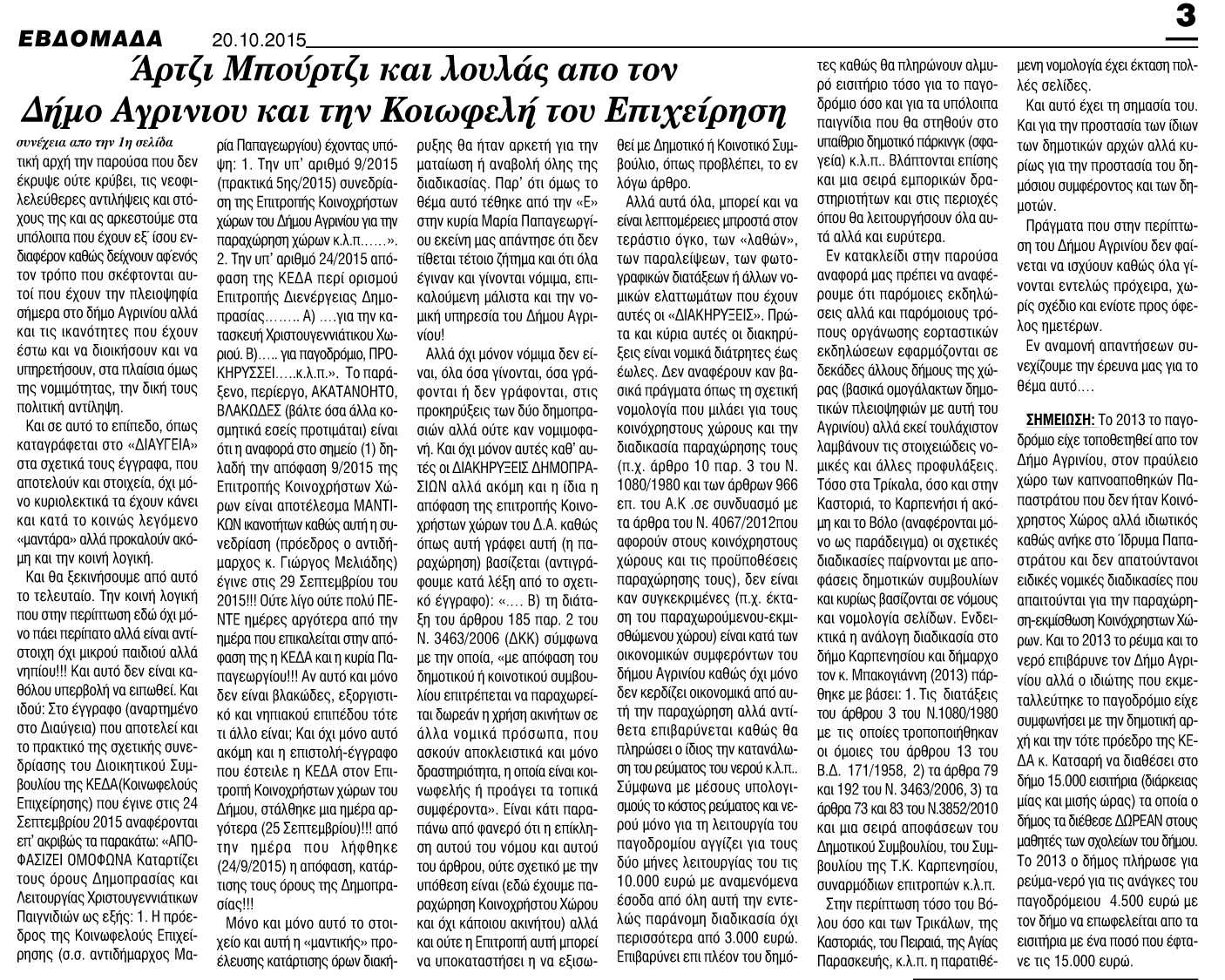 Layout 1Δεν σας κρύβουμε πως δεν γνωρίζαμε ως agrinioreport.com σε ποιους αναφερόταν ο κ. Παπαναστασίου. Φυσικά αναρωτηθήκαμε αλλά δεν ήταν και κάτι το οποίο μας αφορούσε άμεσα ως μέσο, ώστε να δώσουμε έκταση και να ψάξουμε στο ποιος είπε τι. Σήμερα το πρωί λάβαμε στο mail του site μας την ανακοίνωση του δημάρχου κ. Παπαναστασίου ενώ προς το μεσημέρι λάβαμε και ένα ακόμη mail από έναν συνάδερφο κάτοχο της εφημερίδας “ΕΒΔΟΜΑΔΑ” . Έτσι καταλάβαμε πως η ανακοίνωση του Δήμου (που ήταν συνέχεια της αντίδρασης που έγινε στην συνέντευξη τύπου του ΔΗ.ΠΕ.ΘΕ από το Δήμαρχο) αφορούσε σε σχόλια της εφημερίδας “ΕΒΔΟΜΑΔΑ” που αναφέρονταν στους μισθούς των αιρετών του δήμου. Όπως μπορεί ο καθένας να καταλάβει το συγκεκριμένο θέμα είναι πολύ λεπτό δεοντολογικά. Ο λόγος ; Επειδή γίνεται αναφορά σε κάποιο άλλο μέσο ενημέρωσης. Όμως εμπεριέχει και πολύ ενδιαφέρον μιας και πρόκειται για τις μισθοδοσίες Δημάρχου Αντιδημάρχων κ.τ.λ.