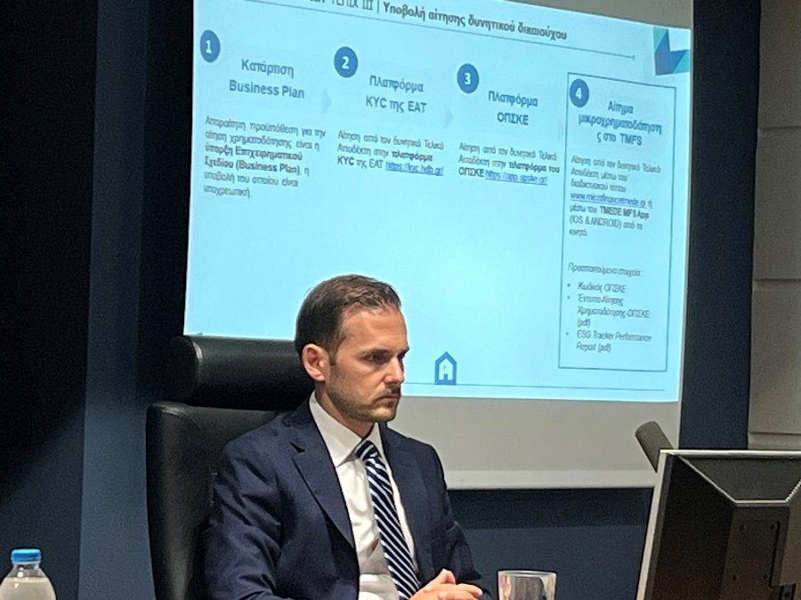 Ο Κωνσταντίνος Αγγελόπουλος, από την πλευρά του, τόνισε: «Η Ελληνική Αναπτυξιακή Τράπεζα παραμένει σταθερά προσηλωμένη στον στόχο της διεύρυνσης του κύκλου των χρηματοδοτούμενων μικρομεσαίων επιχειρήσεων και της ενίσχυσης της ανταγωνιστικότητάς τους, μέσω ευέλικτων, στοχευμένων και με ιδιαίτερα ευνοϊκούς όρους χρηματοδοτικών εργαλείων. Με τη στήριξη του Ταμείου Μικροπιστώσεων, προβλέπεται η ενίσχυση περίπου 3.300 επιχειρήσεων, εκ των οποίων 1.000 στο πλαίσιο της γυναικείας επιχειρηματικότητας. Τα Ιδρύματα Μικροχρηματοδοτήσεων θα χορηγούν δάνεια κεφαλαίου κίνησης και επενδυτικά δάνεια, ύψους από 3.000 έως 25.000 ευρώ, διάρκειας 12 έως 96 μηνών, με δυνατότητα περιόδου χάριτος έως 6 μήνες, χωρίς εμπράγματες εξασφαλίσεις. Το Ταμείο, συνολικού προϋπολογισμού 80 εκατ. ευρώ, αποτελεί ένα εργαλείο με ισχυρό κοινωνικό πρόσημο, που ενισχύει στοχευμένα τη μικροεπιχειρηματικότητα και επενδύει στις τοπικές κοινωνίες και την απασχόληση.»