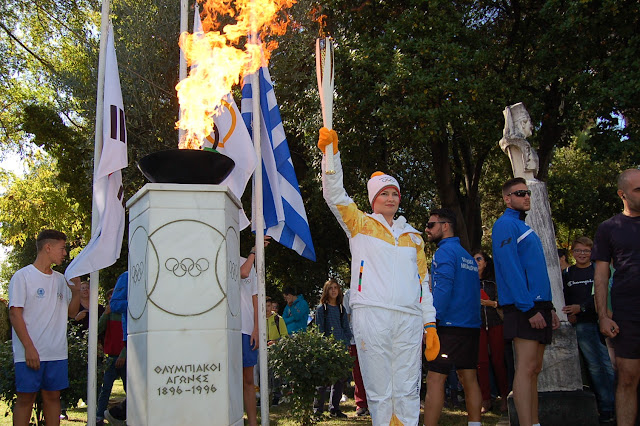 Στην λαμπαδηδρομία συμμετείχαν οι συμπολίτες μας Γιάννης Νικάκης, Λαμπρινή Πανάρετου, Παναγιώτης Παπαχρήστος και Μαρία Κιτσινέλη, ενώ η τελετή αφής πραγματοποιήθηκε στον βωμό του Κήπου των Ηρώων.
