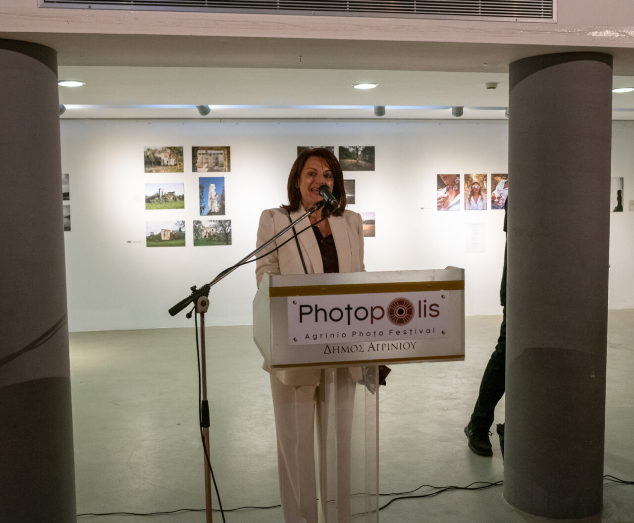 «Είμαι ιδιαίτερα χαρούμενη κατ αρχήν που βρισκόμαστε πάλι όλοι μαζί. Είχα συνηθίσει με τις πολλές εκδηλώσεις που κάναμε στον δήμο Αγρινίου. Τώρα πέρασαν πάρα πολλοί μήνες και πραγματικά και συγκινούμαι και χαίρομαι πάρα πολύ που ξεκινούμε πάλι έσω δειλά, έστω υπό προϋποθέσεις. Λέμε πάντοτε ότι στους δύσκολους καιρούς οι άνθρωποι ψάχνουν να βρουν διέξοδο στην τέχνη, ο πολιτισμός μας ενώνει και είναι μια σανίδα σωτηρίας, δυστυχώς όμως τώρα με την πανδημία το χάσαμε και αυτό το πλεονέκτημα. Σήμερα ξεκινάμε το Φεστιβάλ φωτογραφίας, εγκαινιάζονται οι 4 εκθέσεις και θα υπάρχει αυτό το πλούσιο πρόγραμμα που αναφέρθηκε από τον κ. Φραγκούλη. Τηρώντας όλους τους κανονισμούς τους υγειονομικούς θα φροντίσουμε όλοι να τα  παρακολουθήσουμε. Ο δήμος Αγρινίου σταθερά στηρίζει αυτές τις προσπάθειες και πως αλλιώς θα μπορούσε να κάνει όταν μιλάμε για την ομάδα αυτή, την “art8”, άνθρωποι οι οποίοι αγαπούν την τέχνη της φωτογραφίας, αλλά που γενικότερα προσπαθούν και προάγουν πάρα πολύ τον πολιτισμό στην πόλη μας… Θέλω να συγχαρώ όλους για την προσπάθεια που κάνουν και πραγματικά εύχομαι καλή επιτυχία και φέτος σε αυτό το υπέροχο φεστιβάλ!