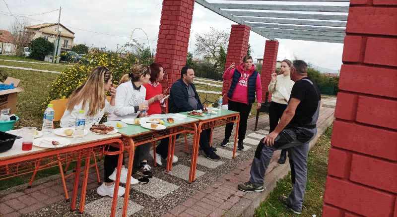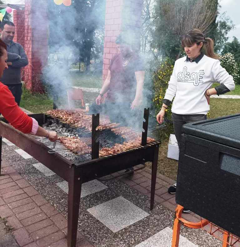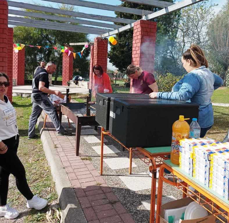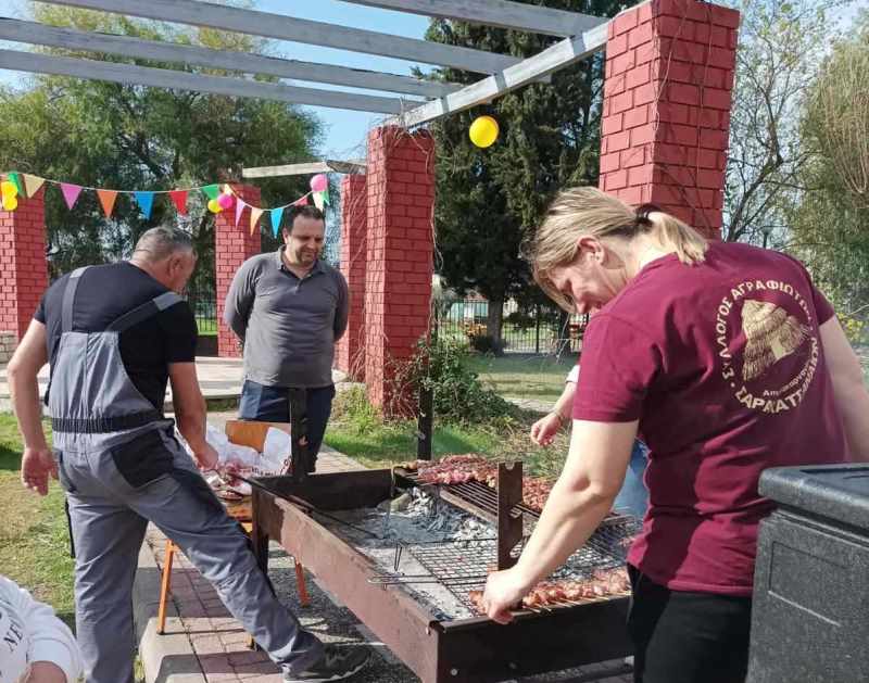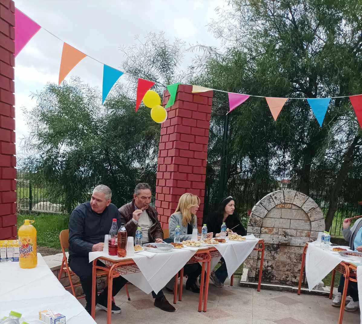 Σε όλους τους μαθητές και δασκάλους προσφέρθηκαν σουβλάκια και αναψυκτικά. Το κέφι συνεχίστηκε με χορό και τραγούδια. Η ξαφνική μπόρα δεν πτόησε τους συμμετέχοντες.