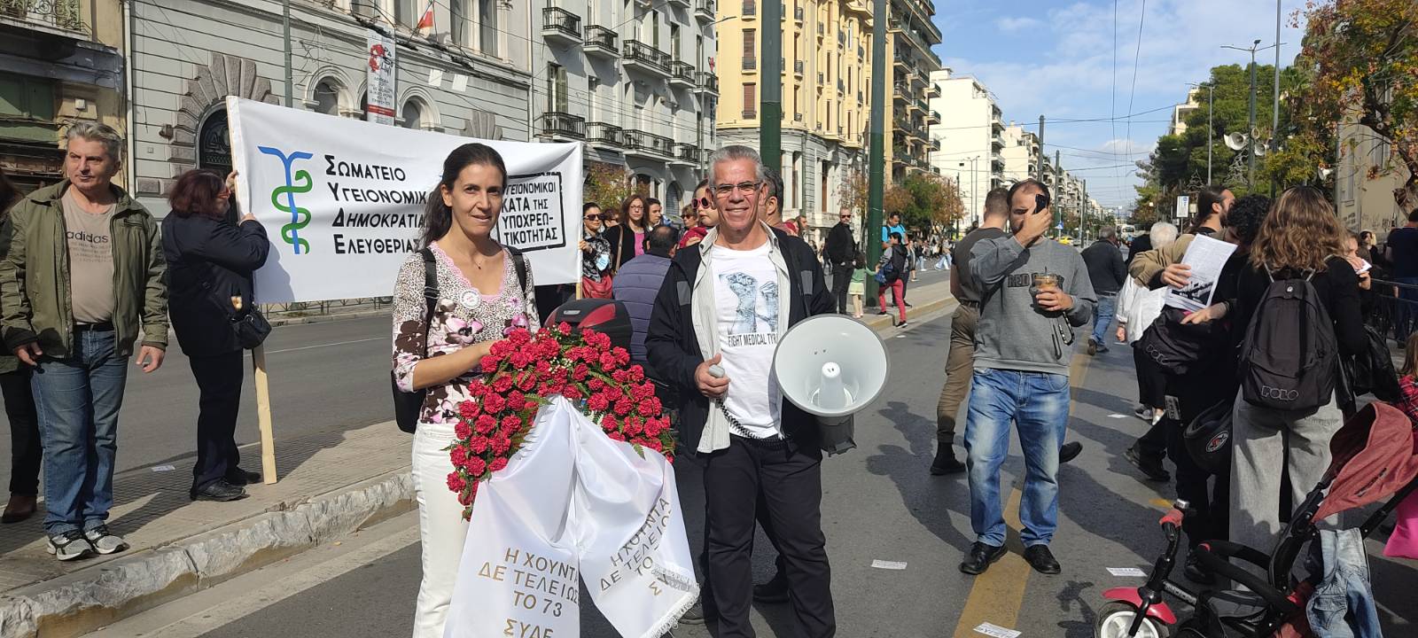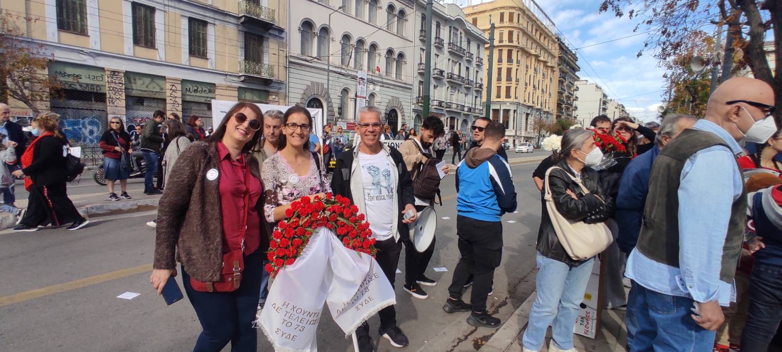 Οι υγειονομικοί κατά της υποχρεωτικότητας βρεθήκαν σήμερα στο χώρο του Πολυτεχνείου προκειμένου να αποδώσουν φόρο τιμής στους πεσόντες για την ελευθερία και την εθνική ανεξαρτησία.