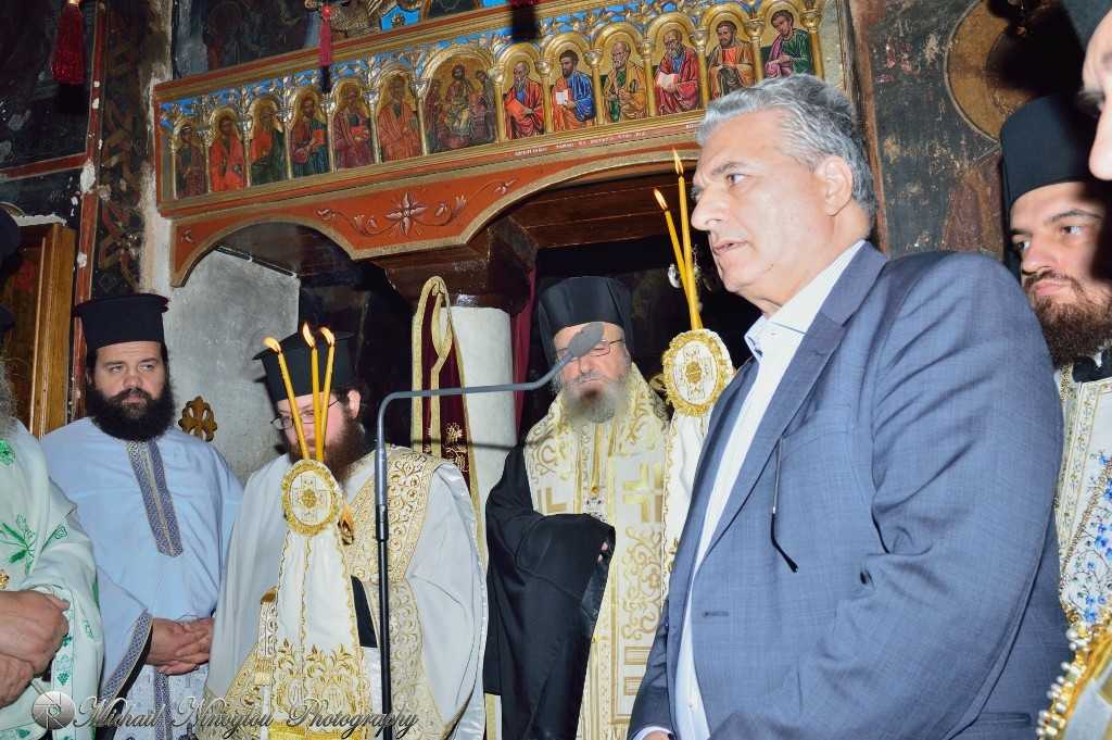 Στην ομιλία του ο Σεβασμιώτατος Μητροπολίτης μας κ. Κοσμάς εξέφρασε τη χαρά και τη συγκίνησή του για την μεταφορά της θαυματουργού Εικόνας της Παναγίας Σουμελά στην Ιερά Μονή Μυρτιάς, πλησίον της θαυματουργού Εικόνας της Παναγίας της Μυρτιωτίσσης. «Η ιερά Εικόνα της Σουμελά έρχεται για να τονώσει την πίστη μας, να μας στηρίξει, να μας υπενθυμίσει τα θαυμαστά και μεγάλα που έγιναν στην ιστορική Μονή του Πόντου. Η Παναγία η Σουμελά είναι ένα σύμβολο, μια εικόνα με μια μοναδική ιστορία. Σκέπει και προστατεύει τους Ποντίους, οι οποίοι υπέφεραν, εμαρτύρησαν και διώχθηκαν με φοβερό τρόπο», ανέφερε μεταξύ άλλων ο Σεβασμιώτατος και συνέχισε: «Οφείλουμε να κλείσουμε τα αυτιά μας σε αυτές τις ανοησίες που ακούγονται και ως Έλληνες να δώσουμε απαντήσεις σε όσους διαστρεβλώνουν την ιστορία μας. Εμείς θα ζούμε την ορθοδοξία μας και την αγάπη μας προς την πατρίδα και ποτέ δε θα λησμονήσουμε τη σκέπη και τα θαύματα της Παναγίας μας. Και τώρα με την παρουσία της θαυματουργού Εικόνας οφείλουμε να δυναμώσουμε την πίστη μας, να αγαπήσουμε περισσότερο την Παναγίας μας, να γίνουμε θερμότεροι χριστιανοί».