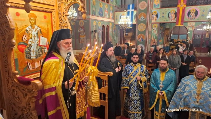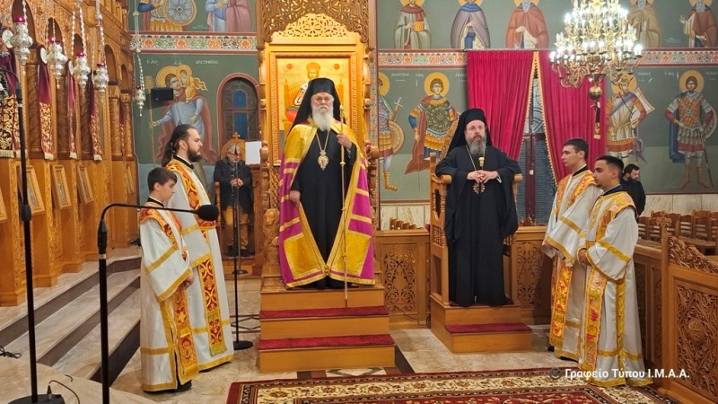 Μέτα την επίσημη υποδοχή ακολούθησε ο πανηγυρικός Εσπερινός, κατά τον οποίο χοροστάτησε ο Μητροπολίτης Καλαβρύτων και Αιγιαλείας και συγχοροστάτησε ο Μητροπολίτης Αιτωλίας και Ακαρνανίας.