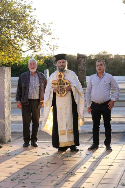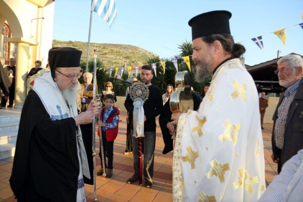 Με το πέρας του εσπερινού, κατά το κήρυγμά του, ο Σεβασμιώτατος κ. Γεώργιος επεσήμανε πως «η εορτή ενός Αγίου που τιμά μια ενορία είναι αφορμή για μια ξεχωριστή μέρα, όπως σήμερα που τιμάται εδώ ο προστάτης σας Άγιος Γεράσιμος. Και η ξεχωριστή μέρα αυξάνεται, καθώς ανάμεσά μας βρίσκεται ο Τίμιος Σταυρός, ένα τμήμα από το Τίμιο Ξύλο του Χριστού μας». Ο Σεβασμιώτατος κ. Γεώργιος, θέλοντας να επισημάνει τα κοινά νοήματα των δύο αυτών γεγονότων στην ενορία του Κεφαλοβρύσου, μεταξύ άλλων, τόνισε: «Η αλήθεια είναι πως σε τούτη τη ζωή δεν ήρθαμε να απολαύσουμε και να περάσουμε καλά, όπως συνηθίζεται και λέγεται. Αυτό είναι μία πλάνη, καθώς βλέπουμε τον ίδιο τον Κύριό μας να θυσιάζεται, να καρφώνεται πάνω στο Σταυρό, καθώς βλέπουμε τους Αγίους της Εκκλησίας μας και τους Μάρτυρες, να υποφέρουν. Έτσι κάθε άνθρωπος καταλαβαίνει ότι πρέπει να σηκώσει το δικό του σταυρό, το δικό του φορτίο. …Η ζωή μας έχει περισσότερες δυσκολίες, περισσότερους κόπους και λιγότερες χαρές. Γιατί, από τη στιγμή που ο Αδάμ και η Εύα θέλησαν να ζήσουν μακριά από το Θεό, επέλεξαν να βρίσκουν τη λύπη και τη δυστυχία. …Ενώ, όταν ο άνθρωπος βρίσκεται κοντά στο Θεό, δεν θα βλέπει τα προβλήματά του αλλά θα βρίσκει δύναμη, τόση δύναμη που θα προσπερνά τα προβλήματα, δεν θα κλονίζεται από αυτά. Έτσι, αν προσπαθήσουμε να εμβαθύνουμε στα παραδείγματα των Αγίων της Εκκλησίας μας, θα αντλήσουμε δύναμη όπως δύναμη αντλούσαν και οι Άγιοι της Εκκλησίας. …Αυτό ζητάμε. Δεν γίνεται να μην σηκώνουμε σταυρό, δεν γίνεται να μην ετοιμαζόμαστε, να μην έχουμε δυσκολίες, δεν γίνεται να υπάρχει άνθρωπος που στη ζωή του να μην έχει πρόβλημα. Όλοι μας αντιμετωπίζουμε προβλήματα, αλλά κοντά στους Αγίους μας και προσκυνώντας τον Τίμιο Σταυρό, θα παίρνουμε δύναμη. Θα σηκώνουμε τον δικό μας σταυρό, ώστε να βοηθούμε και τους άλλους».