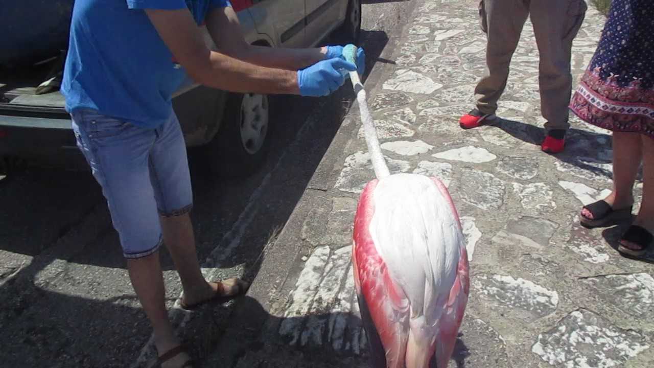 Το Φοινικόπτερο (Phoenicopterus ruber), βρέθηκε απομονωμένο στην περιοχή μεταξύ της Παλαιοπαναγίας και του Πλατανίτη του Δήμου Ναυπακτίας. Καθώς στην περιοχή αυτή δεν απαντώνται φοινικόπτερα, μεταφέρθηκε από πολίτες στο Δασαρχείο Ναυπάκτου το οποίο στην συνέχεια ήρθε σε τηλεφωνική επικοινωνία με τον Φορέα Διαχείρισης Λιμνοθάλασσας Μεσολογγίου – Ακαρνανικών Ορέων.