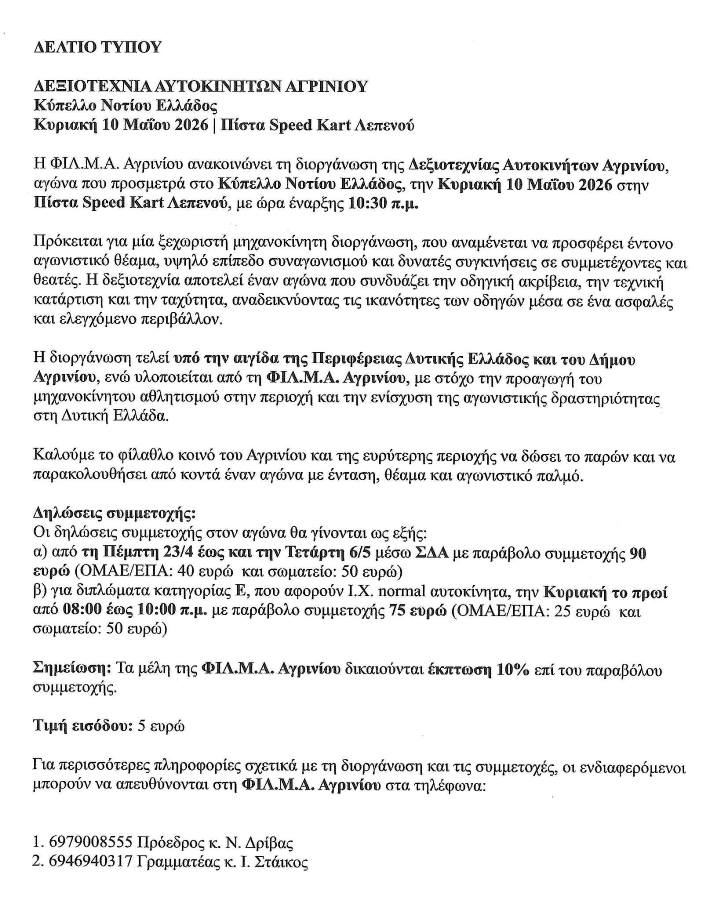 ΦΙΛΜΑ ΑΓΡΙΝΙΟΥ: Δεξιοτεχνία Αυτοκινήτων Αγρινίου