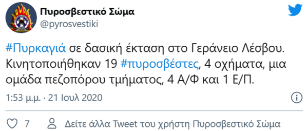 Φωτιά έχει ξεσπάσει στη Λέσβο. Πιο συγκεκριμένα, σύμφωνα με την πυροσβεστική η φωτιά καίει σε δασική έκταση στο Γεράνειο Λέσβου.