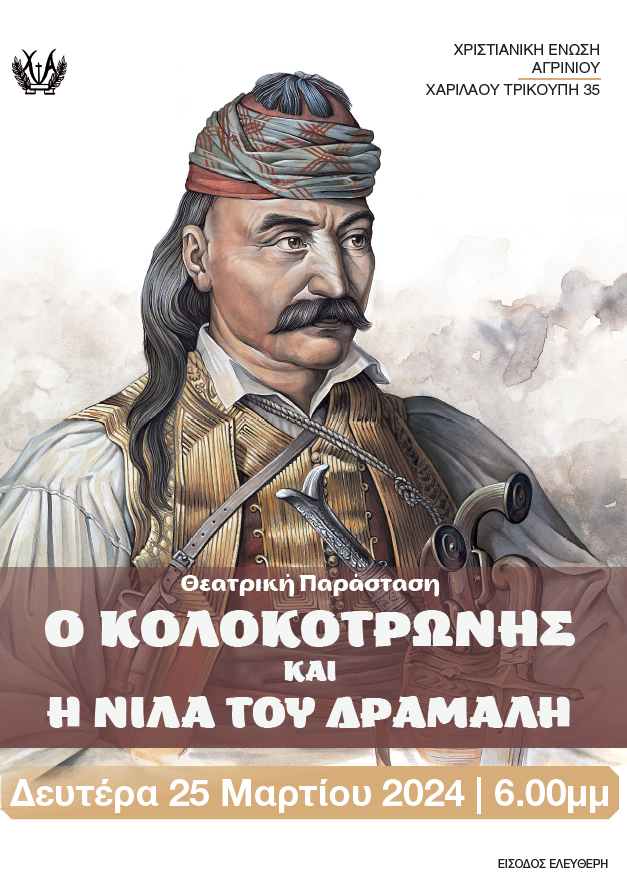 Η Χριστιανική Ένωσις Αγρινίου, τιμώντας την επέτειο της εθνικής παλιγγενεσίας, διοργανώνει στην αίθουσά της εορταστική εκδήλωση, η οποία θα πραγματοποιηθεί ανήμερα της 25ης Μαρτίου 2024 και ώρα 6:00 μ.μ.