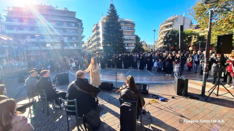 Η πρώτη ομάδα, με επικεφαλής τον Σεβασμιώτατο Μητροπολίτη Αιτωλίας και Ακαρνανίας κ. Δαμασκηνό και υπεύθυνο τον Πρωτοπρ. Κωνσταντίνο Καντάνη, αποτελούμενη από τα μέλη των Νεανικών Συνάξεων των Ενοριών Αγίου Δημητρίου Αγρινίου, Αγίου Νικολάου και Αγίου Δημητρίου Καινουργίου, Αγγελοκάστρου, Στράτου, Λεπενούς, Φυτειών, Αστακού και Βόνιτσας κατευθύνθηκε στην Πλατεία Δημοκρατίας, όπου η Ενοριακή Χορωδία Αγίου Νικολάου και Αγίου Δημητρίου Κανουργίου έψαλλαν παραδοσιακά κάλαντα και τραγούδησαν χριστουγεννιάτικα και παραδοσιακά τραγούδια. Επίσης διένειμαν χριστουγεννιάτικες κάρτες και γλυκίσματα στους περαστικούς.