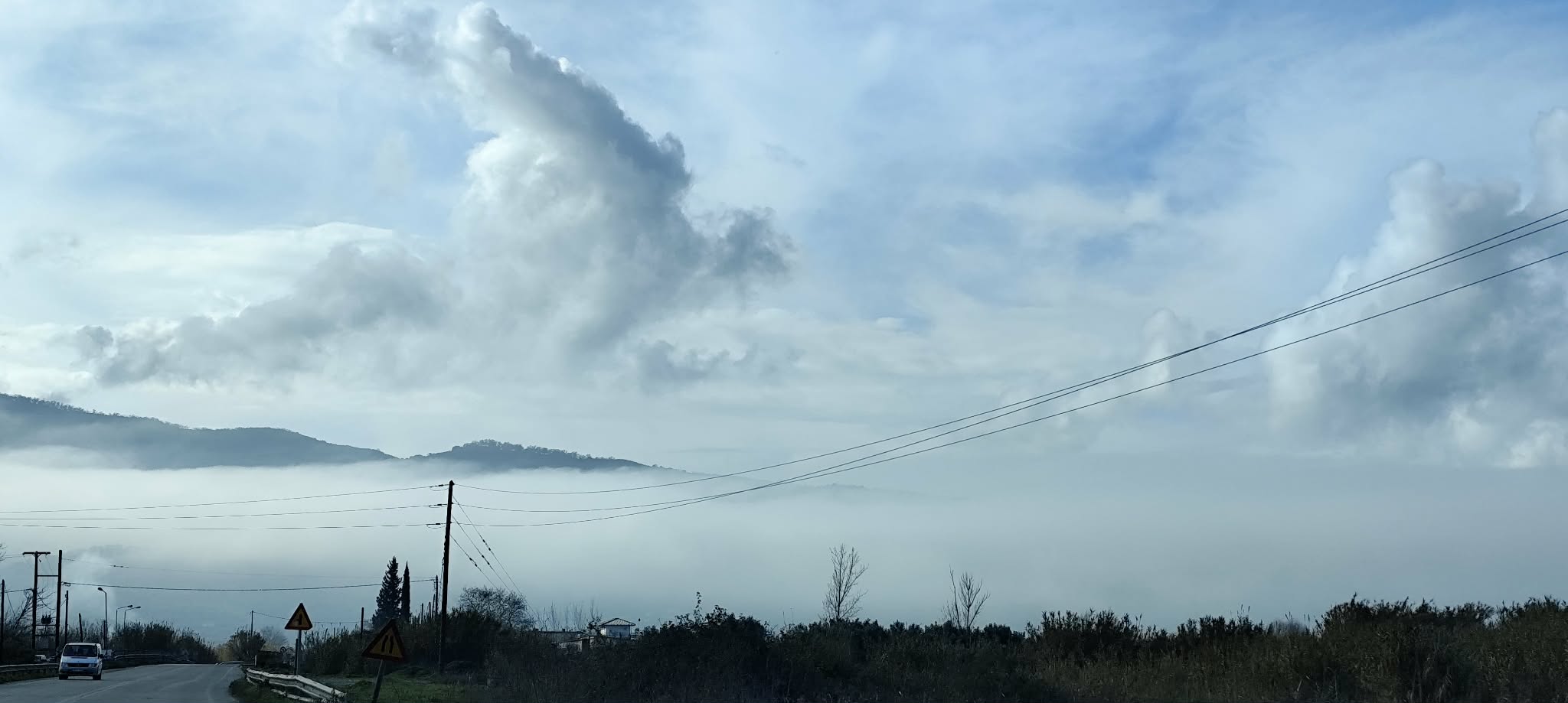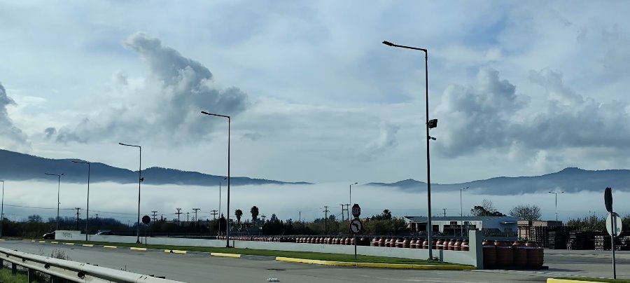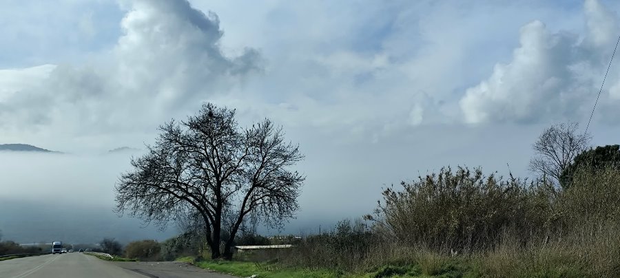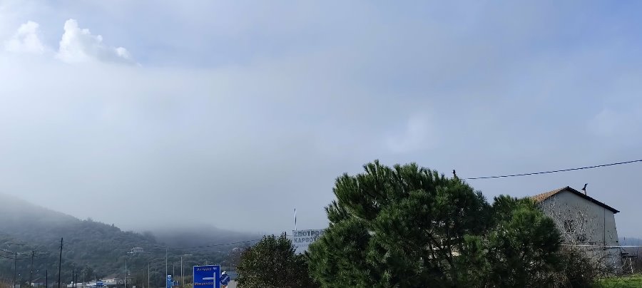 Μπορεί ο ήλιος τελικά να έκανε την εμφάνισή του στην πόλη του Αγρινίου, όμως τις πρώτες πρωινές ώρες η κατάσταση ήταν τελείως διαφορετική στην Ε.Ο. Αγρινίου-Αντιρρίου, λίγο έξω από το Αγρίνιο και συγκεκριμένα περνώντας από την περιοχή “Γεφύρια Αλάμπεη” με κατεύθυνση τα χωριά της Μακρυνείας.