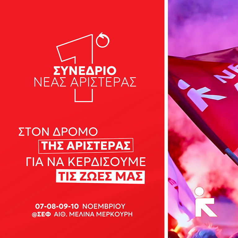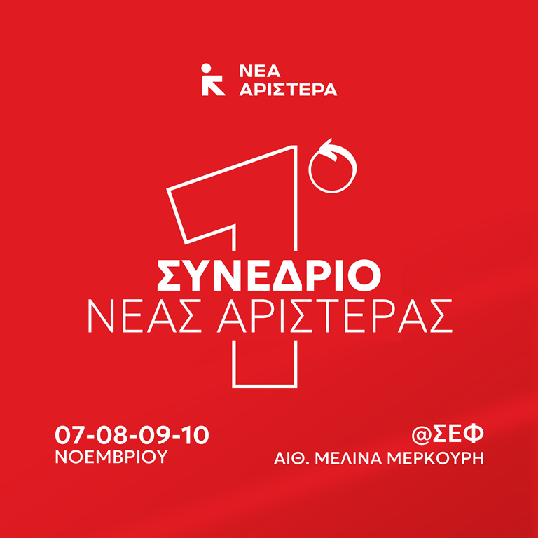 Το 1ο Συνέδριο της Νέας Αριστεράς θα πραγματοποιηθεί από τις 7 μέχρι τις 10 Νοεμβρίου στο Στάδιο Ειρήνης και Φιλίας, στην Αίθουσα Μελίνα Μερκούρη.