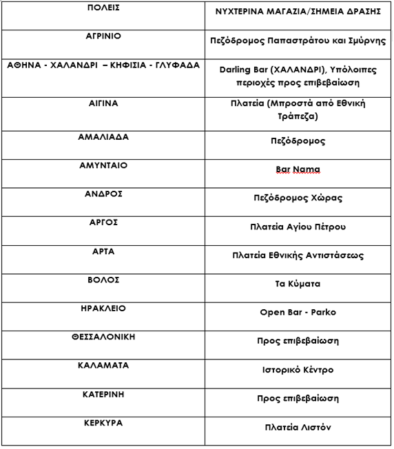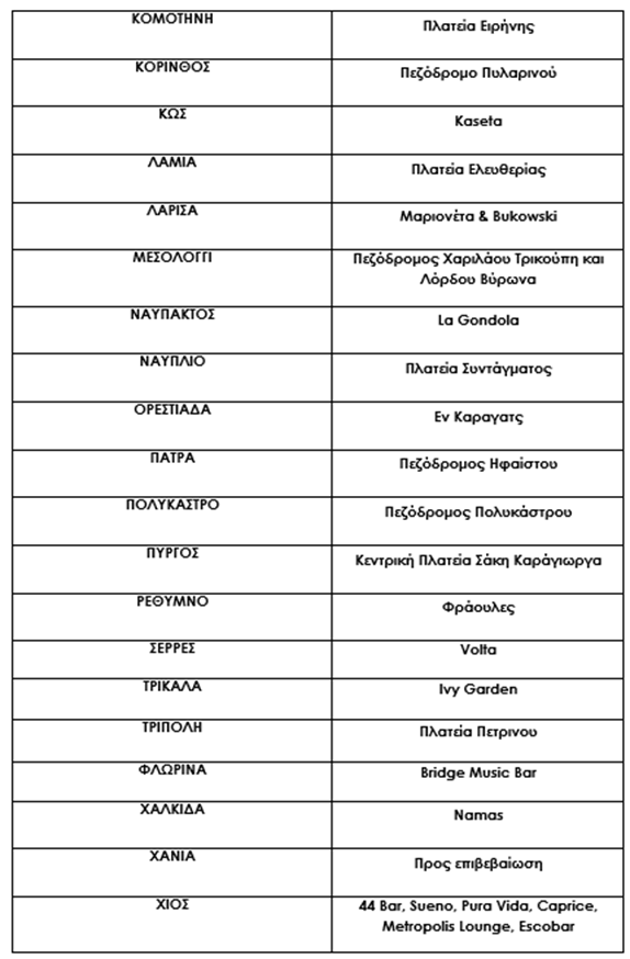 Οι πόλεις που συμμετέχουν και τα σημεία της δράσης για το 2020 είναι: