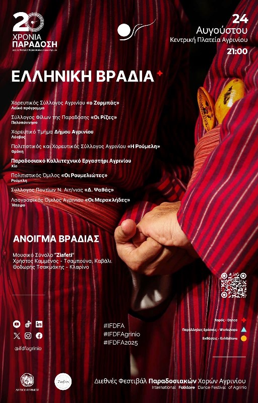 Ώρα 9.00 μ.μ. Τελετή Λήξης του 20ου Διεθνούς Φεστιβάλ Παραδοσιακών Χορών του Δήμου Αγρινίου