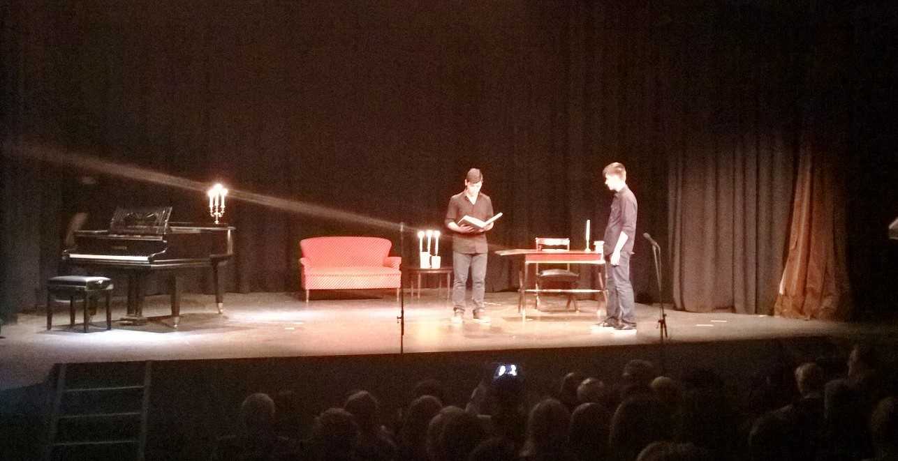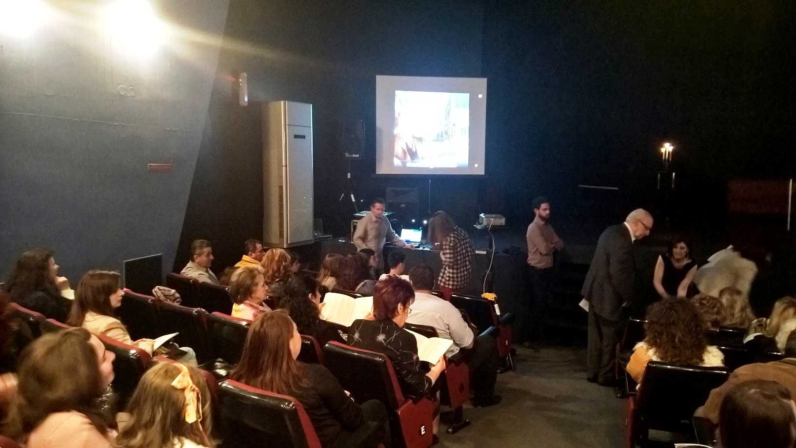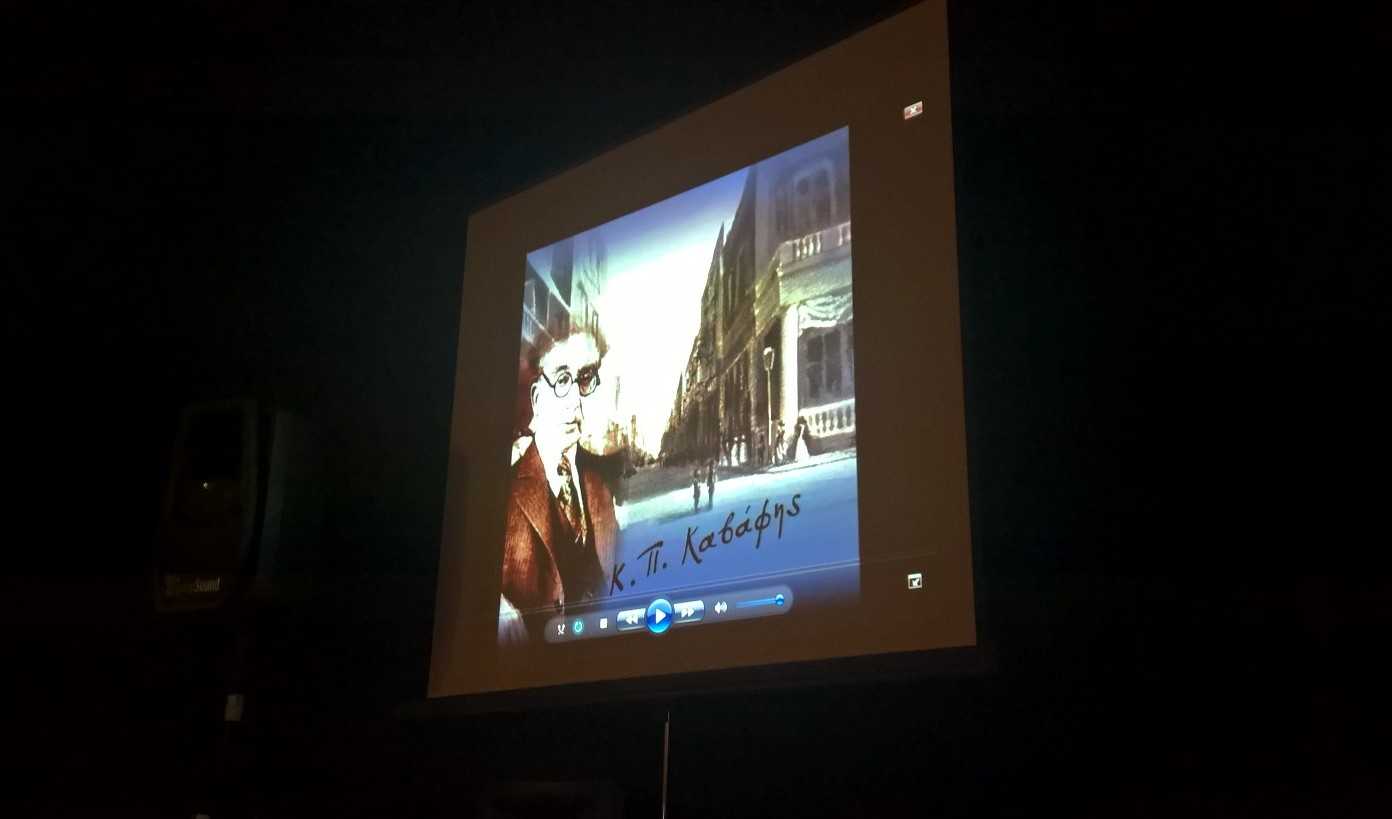 Μέσα σε λίγη ώρα, το θέατρο γέμισε ασφυκτικά και τα φώτα χαμήλωσαν για να ξεκινήσει η εκδήλωση. Αρχικά, έπαιξε ένα βίντεο όπου εμφανίστηκαν διάφορα στοιχεία για τη ζωή του παγκόσμια αναγνωρισμένου ποιητή μας. Κατόπιν, τη θέση στη σκηνή έπαιρναν συνεκδοχικά παιδιά που απήγγειλαν διάφορα ποιήματα του Κωνσταντίνου Καβάφη, όπως “Το πρώτο σκαλί”, το “Περιμένοντας τους βαρβάρους”, το “Όσο μπορείς”, το “Απολείπειν ο Θεός Αντώνιον” και άλλα σπουδαία ποιήματα στα οποία παρεμβάλονταν μικρά σκετσάκια που απεικόνιζαν τμήματα της ζωής του ποιητή.
