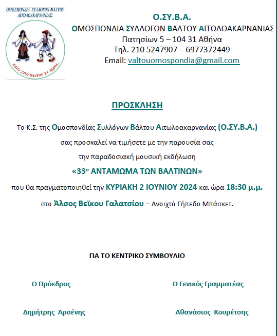 33ο Αντάμωμα Ομοσπονδίας Συλλόγων Βάλτου
