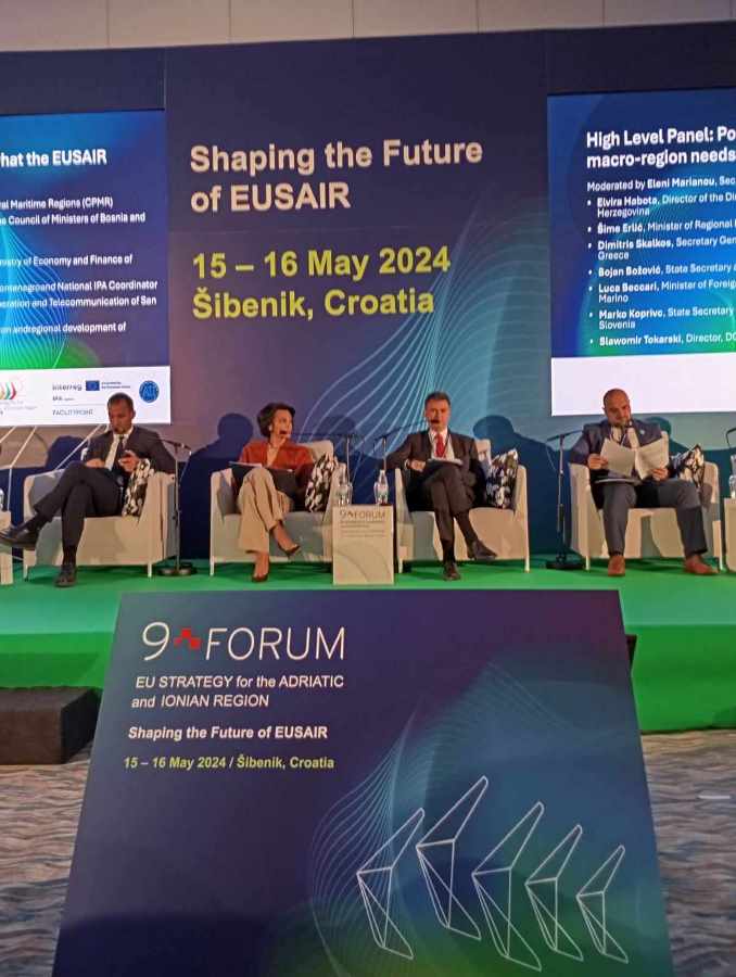 Με μεγάλη επιτυχία ολοκληρώθηκαν οι εργασίες του 9ου Φόρουμ Στρατηγικής της Ε.Ε. για την Μακροπεριφέρεια Αδριατικής-Ιονίου (EUSAIR), με την συμμετοχή στις εργασίες εκπροσώπων του Φόρουμ των Επιμελητηρίων, των Πόλεων και των Πανεπιστήμιων της Αδριατικής και του Ιονίου, που πραγματοποιήθηκαν κατά το χρονικό διάστημα 15-16/05/2024 στα Σίμπενικ της Κροατίας και στις oποίες συμμετείχε και το Επιμελητήριο Αιτωλοακαρνανίας.