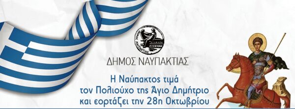 Ο Δήμαρχος Ναυπακτίας κ.Βασίλειος Γκίζας και το Δημοτικό Συμβούλιο σας προσκαλούν στις εκδηλώσεις για τον εορτασμό του Πολιούχου της Ναυπάκτου, Αγίου Δημητρίου και της Εθνικής Επετείου της 28ης Οκτωβρίου.