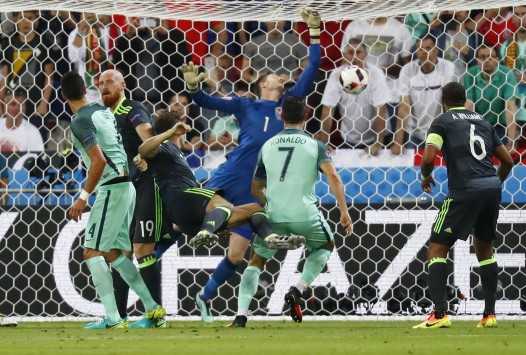 Στο 19΄ και σε κομπίνα των Ουαλών σε κόρνερ, ο Λέντλεϊ βρήκε τον Μπέιλ στο ύψος του πέναλτι αλλά εκείνος σούταρε ψηλά, ενώ στο 23΄ ήταν και πάλι ο άσος της Ρεάλ Μαδρίτης που σούταρε ύστερα από ατομική προσπάθεια στην αγκαλιά του Ρούι Πατρίσιο., ενώ στη συνέχεια το παιχνίδι ατόνησε ως το 44ο λεπτό, όταν στη σέντρα από δεξιά ο Ρονάλντο πήρε την κεφαλιά αλλά αστόχησε.