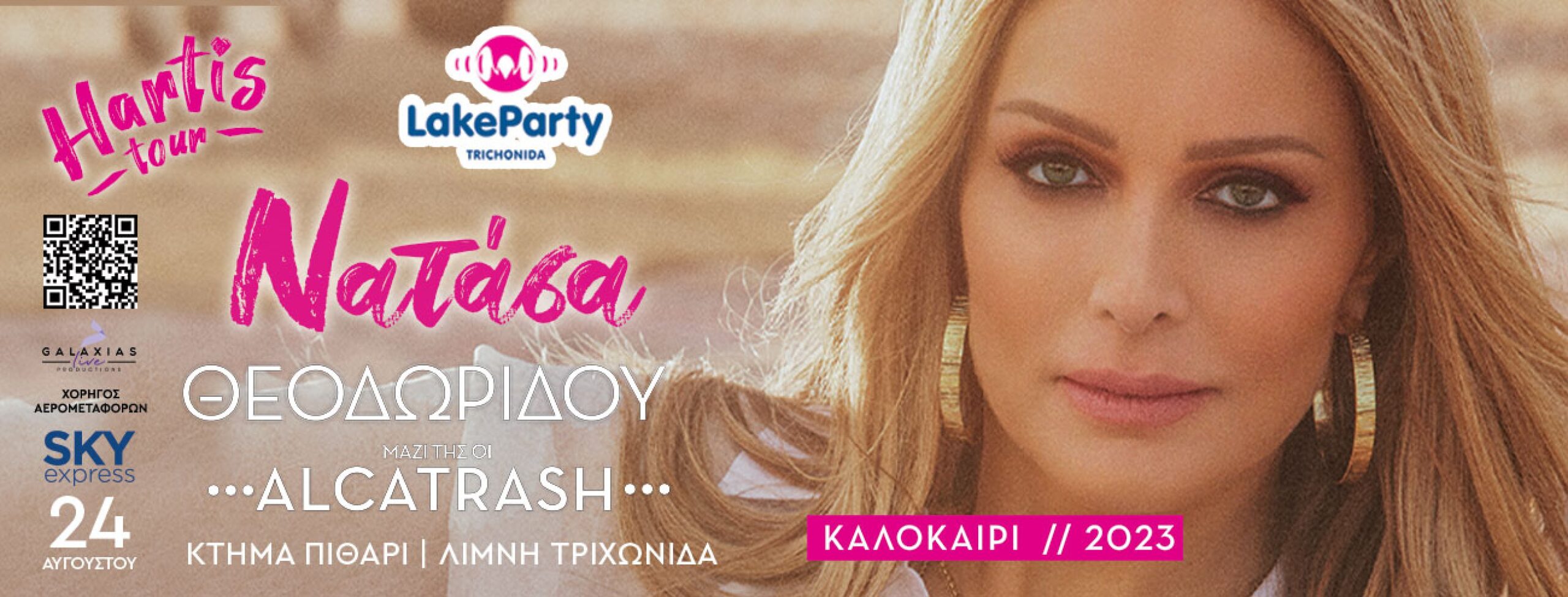Η αγαπημένη Νατάσα Θεοδωρίδου, θα μας ταξιδέψει μέσα από τις μουσικές της επιτυχίες. Μια από τις πιο καταξιωμένες Ελληνίδες τραγουδίστριες και από τις ομορφότερες γυναικείες λαϊκές φωνές που αγγίζει τις καρδιές μας, η Νατάσα Θεοδωρίδου μάς προσκαλεί σε μια μουσική γιορτή, γεμάτη με αγαπημένα της τραγούδια, που μας κάνουν να ερωτευόμαστε, να ταξιδεύουμε και να τραγουδάμε δυνατά σαν μια μεγάλη παρέα. Μαζί της, το συγκρότημα Alcatrash θα μας χαρίσει αμέτρητες στιγμές γεμάτες ρυθμό και ενέργεια.