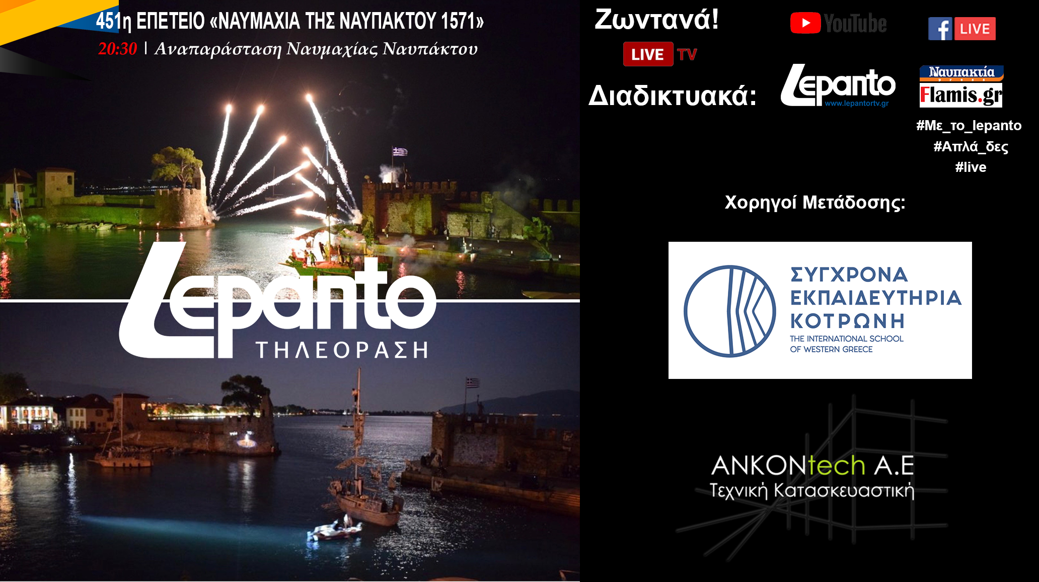 Παρακολουθείστε ζωντανά από το λιμάνι της Ναυπάκτου το Σάββατο στις 8:30 το βράδυ.