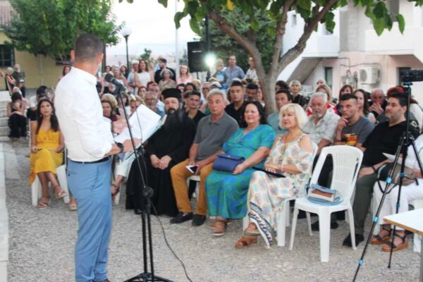 Την έκθεση εγκαινίασε στο κατάμεστο προαύλιο του Σχολείου ο Δήμαρχος Αμφιλοχίας Σάκης Τορουνίδης, αναφέροντας στον χαιρετισμό του πως αποτελεί μια πρωτοβουλία που αναδεικνύει την τοπική καλλιτεχνική παραγωγή και συμβάλλει στον σχεδιασμό μας για την ενδυνάμωση της πολιτιστικής ταυτότητας του Δήμου και την εδραιωση του πολιτισμού, ως αναπόσπαστου μέρους της κοινωνικής και πνευματικής ζωής του τόπου μας.