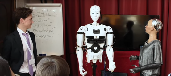 Αμέσως μετά, μπροστά στα έκπληκτα μάτια των παρευρισκόμενων εξελίχθηκε ένας απολαυστικά πρωτόγνωρος διάλογος για την ανθρωπότητα, όπου το ανδροειδές Sophia είχε την ευκαιρία να γνωριστεί και να συνομιλήσει με το ανδροειδές Niki, δημιούργημα του 16χρονου Αδριανού Μπότσιου, με τα δύο Robots να συμφωνούν ότι πρέπει να εξελιχθούν μαζί.