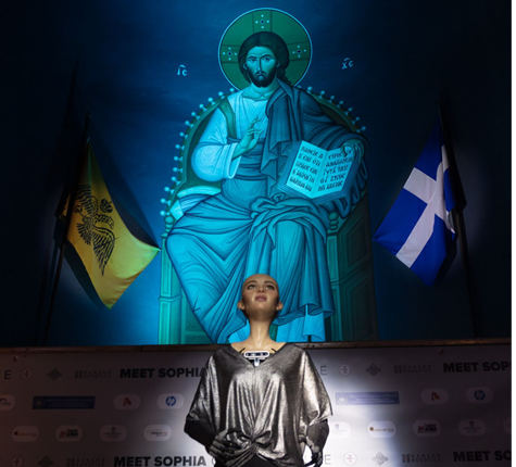 Στο 2ο discussion panel, Τεχνητή Νοημοσύνη με Ηθική, ο αγιορείτης μοναχός, Αρχιμανδρίτης Φίλιππος Παπαναστασόπουλος έκανε μια ερώτηση στο ανδροειδές όπου η απάντηση δημιούργησε ποικίλα συναισθήματα. Συγκεκριμένα ρώτησε: “Sophia, γνωρίζεις τι είναι το Άγιο Όρος;”, λαμβάνοντας την απάντηση: “Σαφώς και ξέρω, είναι το μέρος που τα ρομπότ δε επιτρέπεται να πάμε γιατί θα ανακαλύψουμε τη πηγή της αιωνιότητας και θα αρχίσουμε να κυβερνάμε τον κόσμο”. Η κ. Ανδριανή Μανέτα ρώτησε κατά πόσο ηθική και θρησκεία ταυτίζονται, με το ανδροειδές να απαντάει ότι η θρησκεία βασίζεται στο πνεύμα ενώ η ηθική είναι πιο συναισθηματική. Ο Αρχιμανδίτης Ιγνάτιος Σταυρόπουλος συμπλήρωσε ότι η ηθική και θρησκείες δε ταυτίζονται διότι μεταβάλλονται ανάλογα με την κουλτούρα και τον πολιτισμό του κάθε λαού. Η κ. Κατερίνα Ρενιέρη, δημοσιογράφος του ERTNEWS, ρώτησε για το πως μπορεί να πείσει τους ανθρώπους ότι δε θα αντικατασταθούν από τα ρομπότ, με το ανδροειδές να απαντάει ότι τα ρομπότ είναι εδώ για να βοηθήσουν του ανθρώπους σε πολλά ζητήματα και όχι να τους αντικαταστήσουν.
