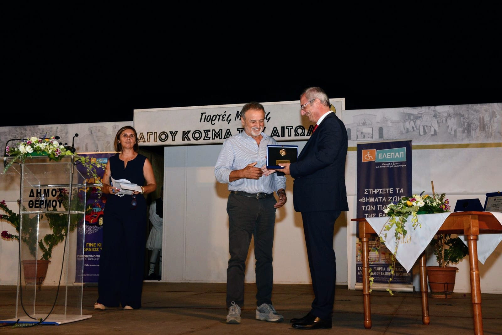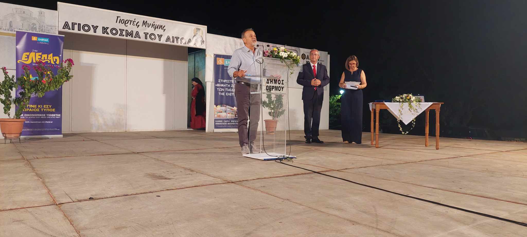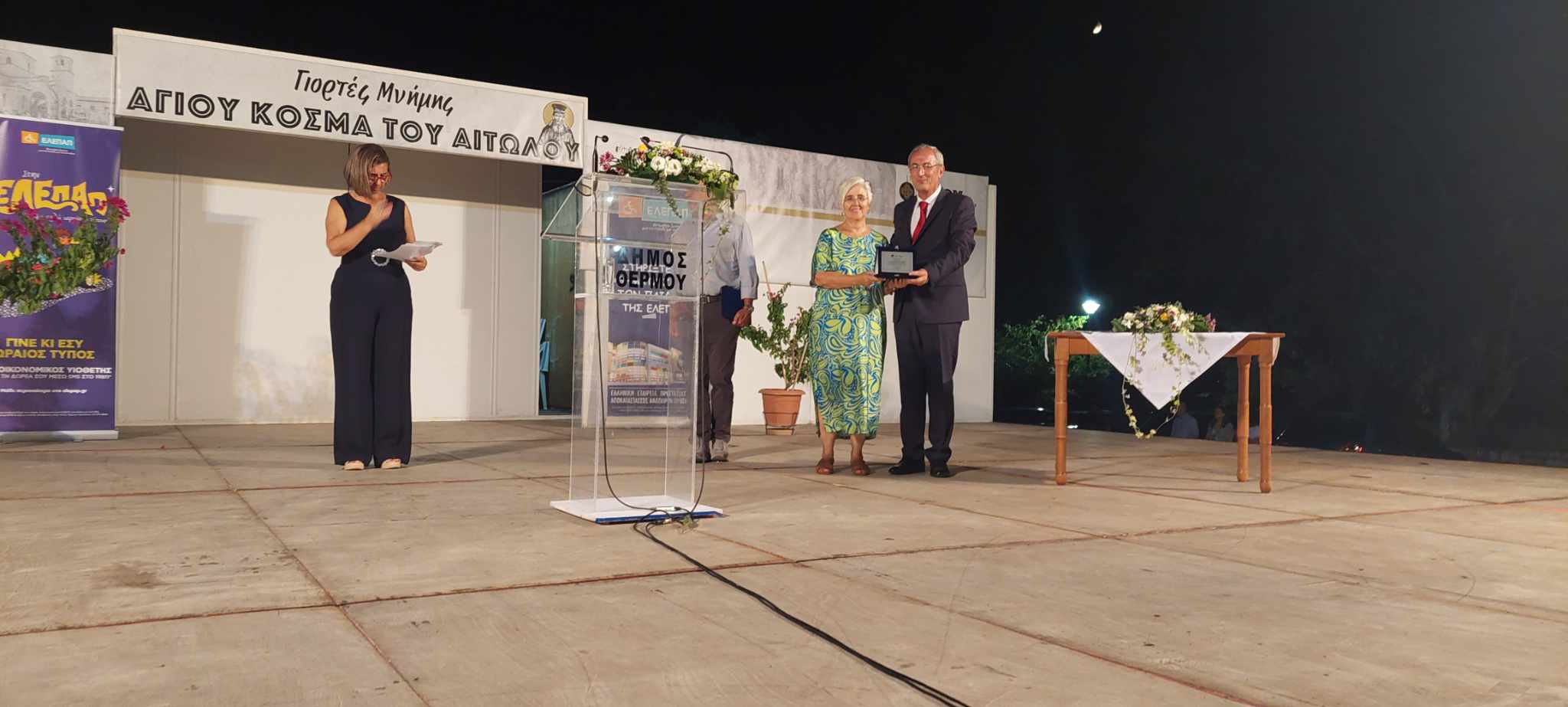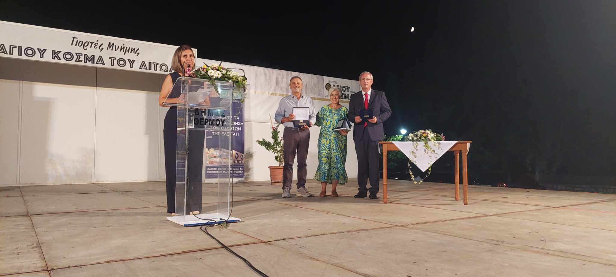 Στα πλαίσια των Εορτών Μνήμης Αγίου Κοσμά του Αιτωλού, ο Δήμος Θέρμου πραγματοποίησε στις 24/08/23 παρουσία πλήθους κόσμου τιμητική εκδήλωση και βράβευση, προς τιμήν του τ. Προέδρου της ΕΛΕΠΑΠ Αγρινίου κου Επαμεινώνδα Τάνταρου και της νυν Προέδρου της Τοπικής Διοικούσας Επιτροπής της ΕΛΕΠΑΠ κας Λαμπρινής Κολοβού.