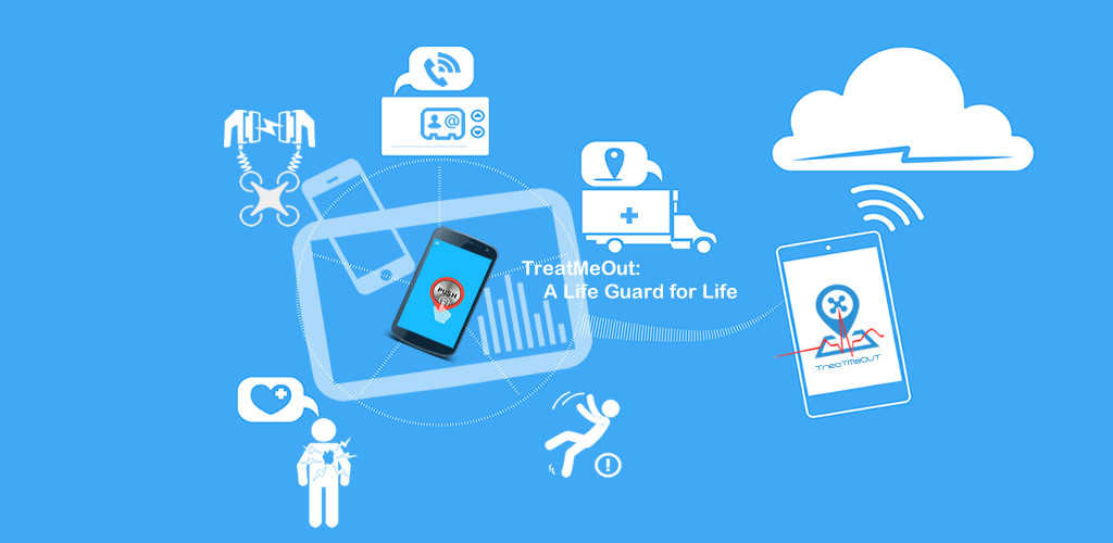 Διαμέσου του TreatMeOut, παρέχονται ένα σύνολο υπηρεσιών ζωτικής σημασίας συμπεριλαμβανομένης της ανίχνευσης πτώσης, εκτίμησης της κατάστασης της υγείας, αναγνώρισή του καρδιακού ρυθμού (HR) και διακύμανσής του (HRV)(έκδοση TreatmeOut Pro) καθώς και την άμεσης ειδοποίησης των επιλεγμένων επαφών έκτακτης ανάγκης ή/και Κέντρο Διαχείρισης Έκτακτης Ανάγκης μέσω μηνυμάτων SMS. Οι υπηρεσίες αυτές θα ολοκληρώνονται με την αποστολή ειδικά διαμορφωμένων πολύπτερων (drones) που φέρουν ιατρικό εξοπλισμό, συμπεριλαμβανομένων απινιδωτών με σκοπό την άμεση καρδιακή επαναφορά στο σημείο.